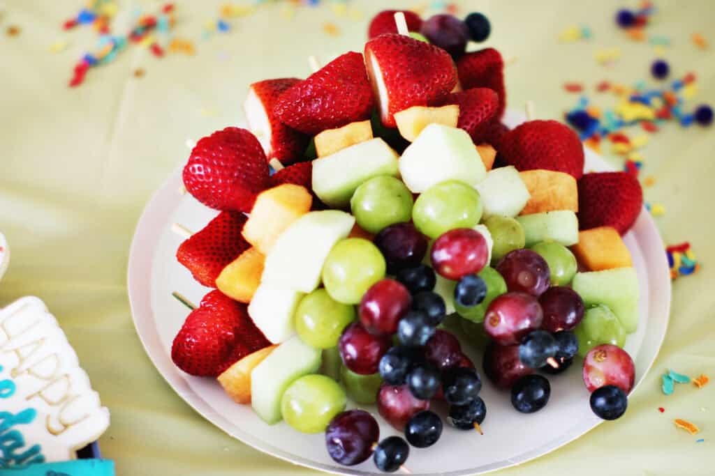 - I prepped as much as possible ahead of time. My mom cut up the veggies and had them in gallon baggies ready to go, then the fruit kabobs too. So all I had to do was set everything out.
