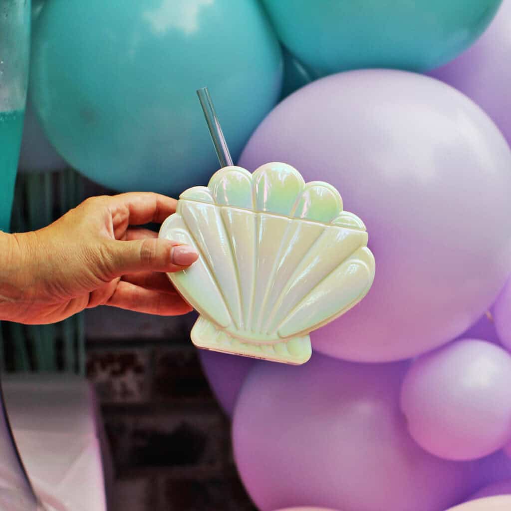 We scored at Target for the other detail pieces! The mermaid garland, party hats, backdrop garland, (we used two) and shell plates were all from their collection. Also the plastic shell cup for the birthday girl was from their party section!